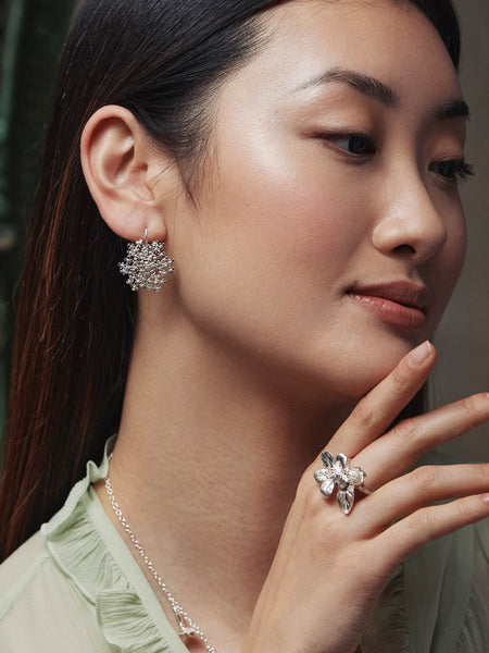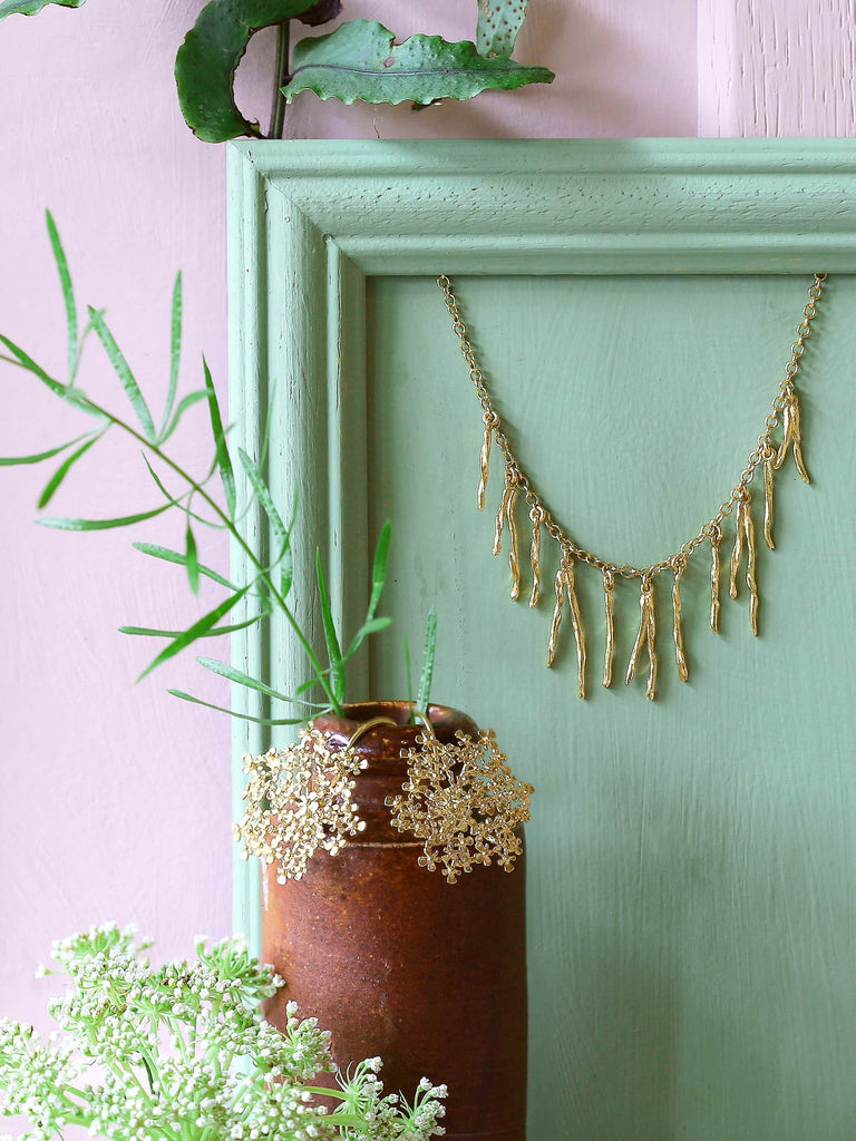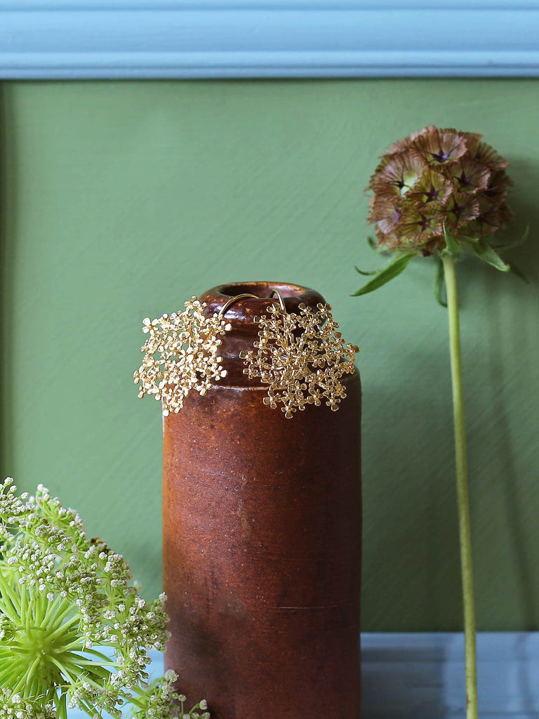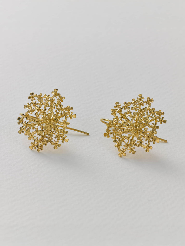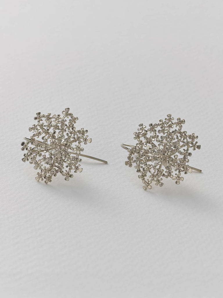 Cow Parsley can be found in British hedgerows and meadows from spring into summer. Here we have recreated these delicate wild flowers into light and airy earrings, capturing the optimism of this time of the year. Handmade in our London workshop.