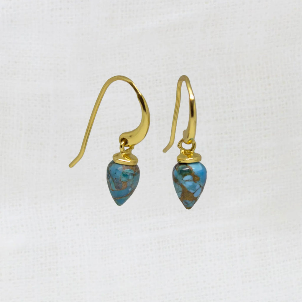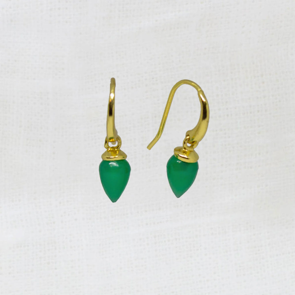 These easy-to-wear droplet earrings are available in a range of gemstones - choose from Copper Turquoise, Aqua Chalcedony, Green Onyx, Labradorite, Lapis Lazuli and Ruby - adding a pop of colour to your outfit.