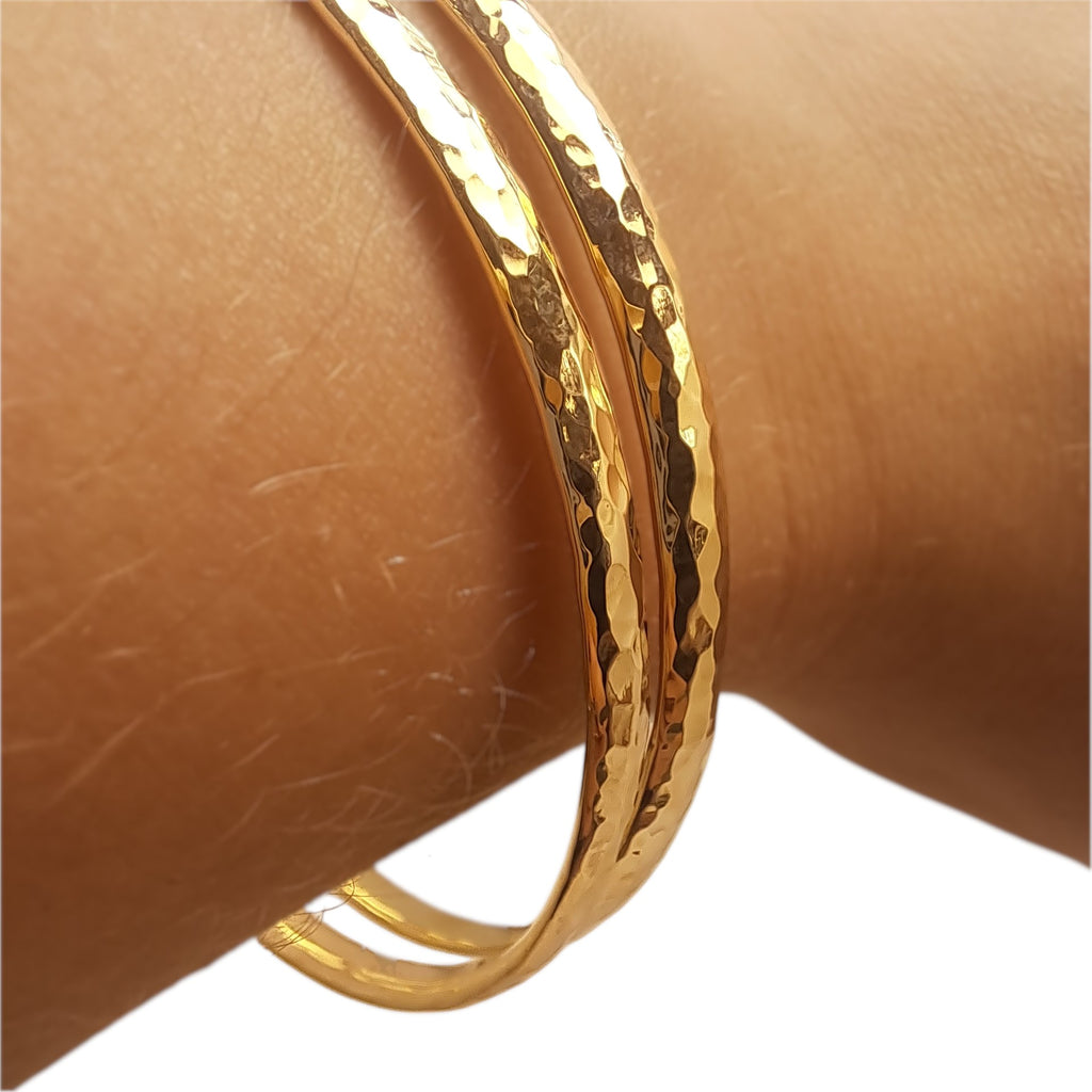 4mm 9ct Gold Hammered Court Bangle - Oval Wire