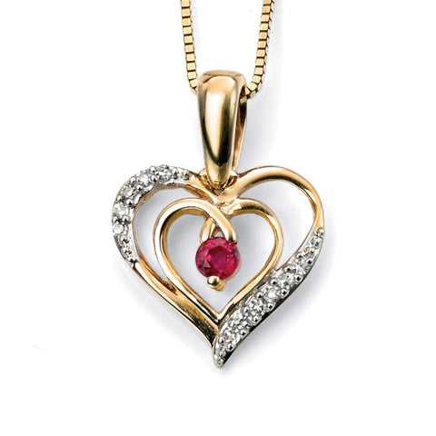 9ct Gold Open Heart Ruby and Diamond Pendant Necklace