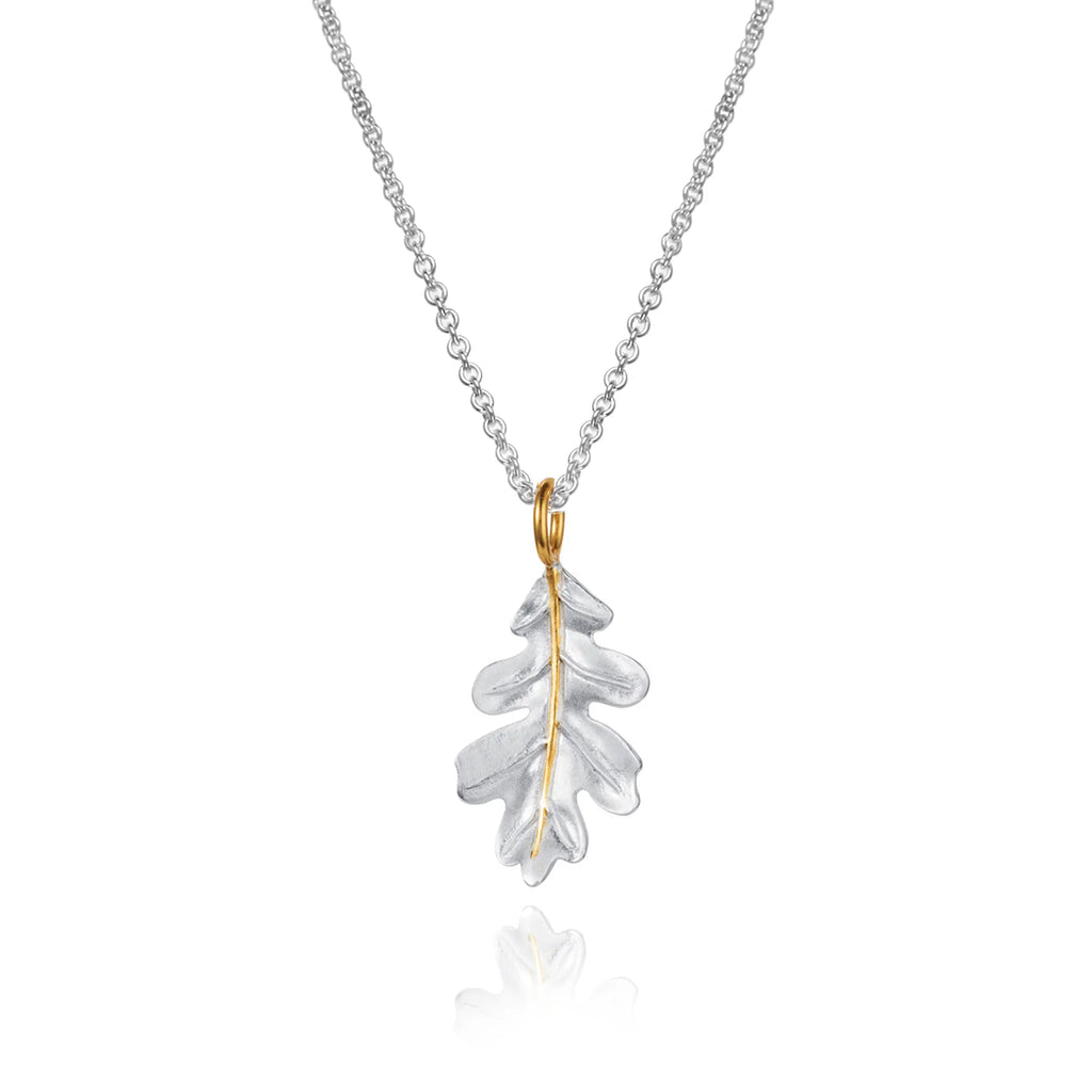 The silver oak leaf necklace has a natural beauty that is easy to style and layer and there are matching earrings available.