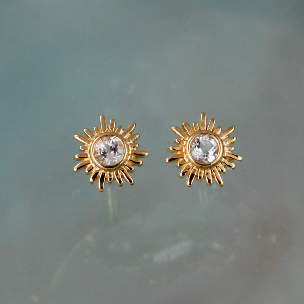 These lovely small gold studs are set with a natural gemstone to complement the symbol of the sun and it's connection to life and warmth.