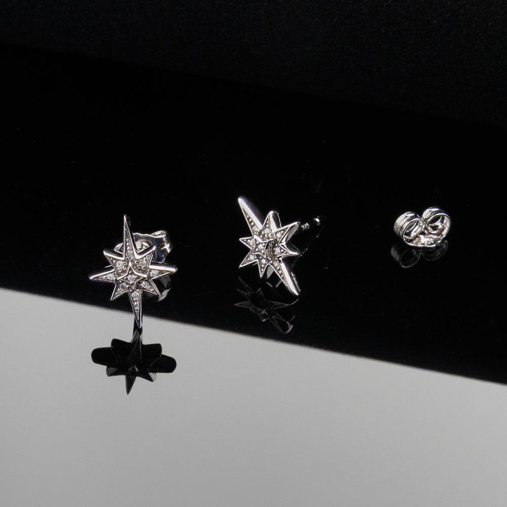Our Céleste North Star Stud Earrings in Sterling Silver are a new standout, special limited edition for the Winter 2025 season, designed to reflect light—and attention—with every subtle turn. Meticulously set with brilliant Cubic Zirconia on each point, each stud radiates a starburst pattern inspired by the night sky. These starlit earrings offer the perfect finishing touch for both day-to-night styling. As a symbol of guidance and enduring brilliance, these radiant earrings make a thoughtful gift—one that’s destined to be treasured forever.