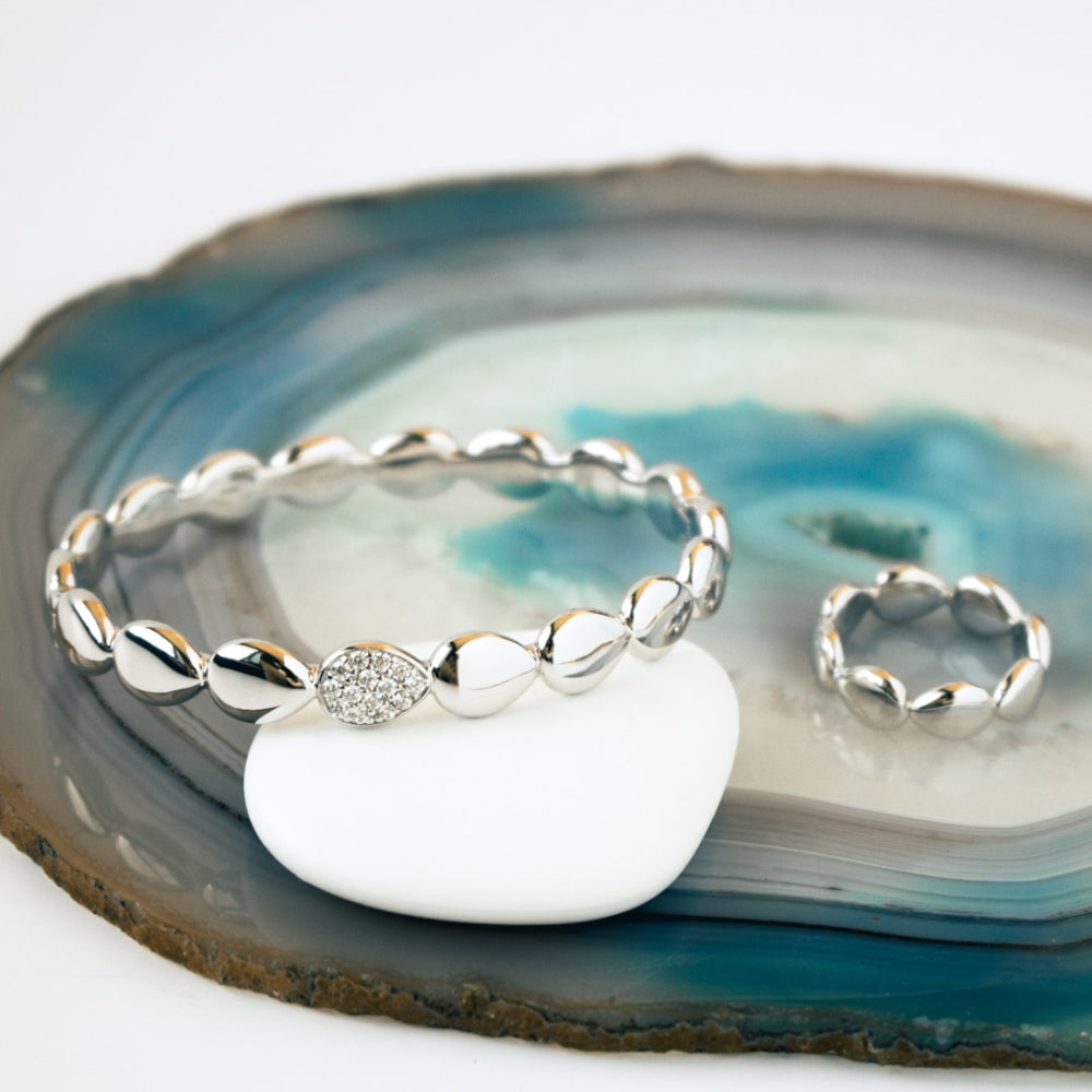 The new Pebbles collection is made in premium solid sterling silver with a highly polished rhodium plated finish.