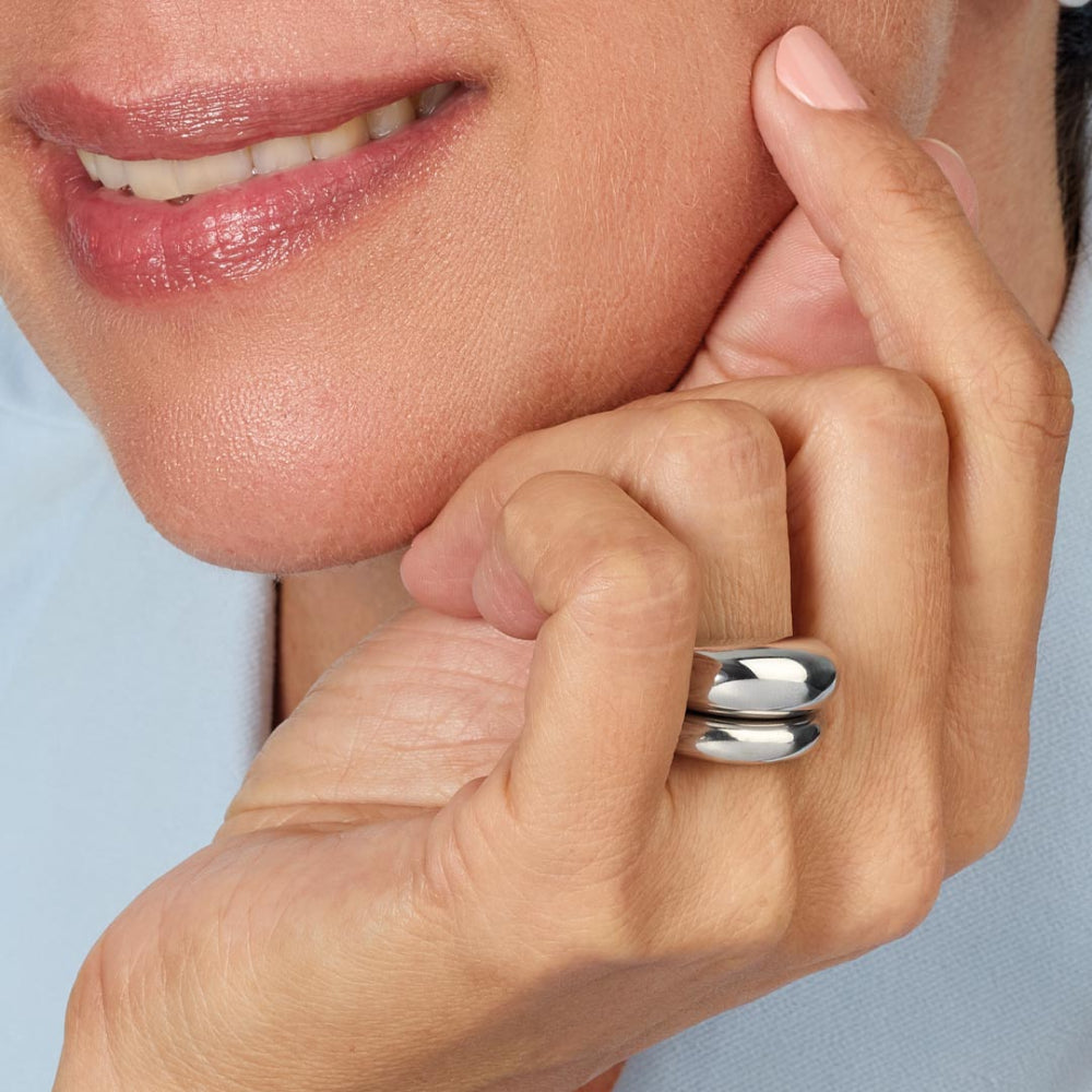 Designed to make a statement with refined strength, the Coast Pebble Smooth Ring brings a bold and voluminous edge to everyday styling. Crafted in solid Sterling Silver, their rounded, sculptural forms are smooth to the touch and confident in presence. Echoing the collection’s distinctive fluid lines, these rings embody a modern silhouette that feels substantial yet effortless. Whether worn solo or stacked, they carry intelligent style from morning through night, all year round.