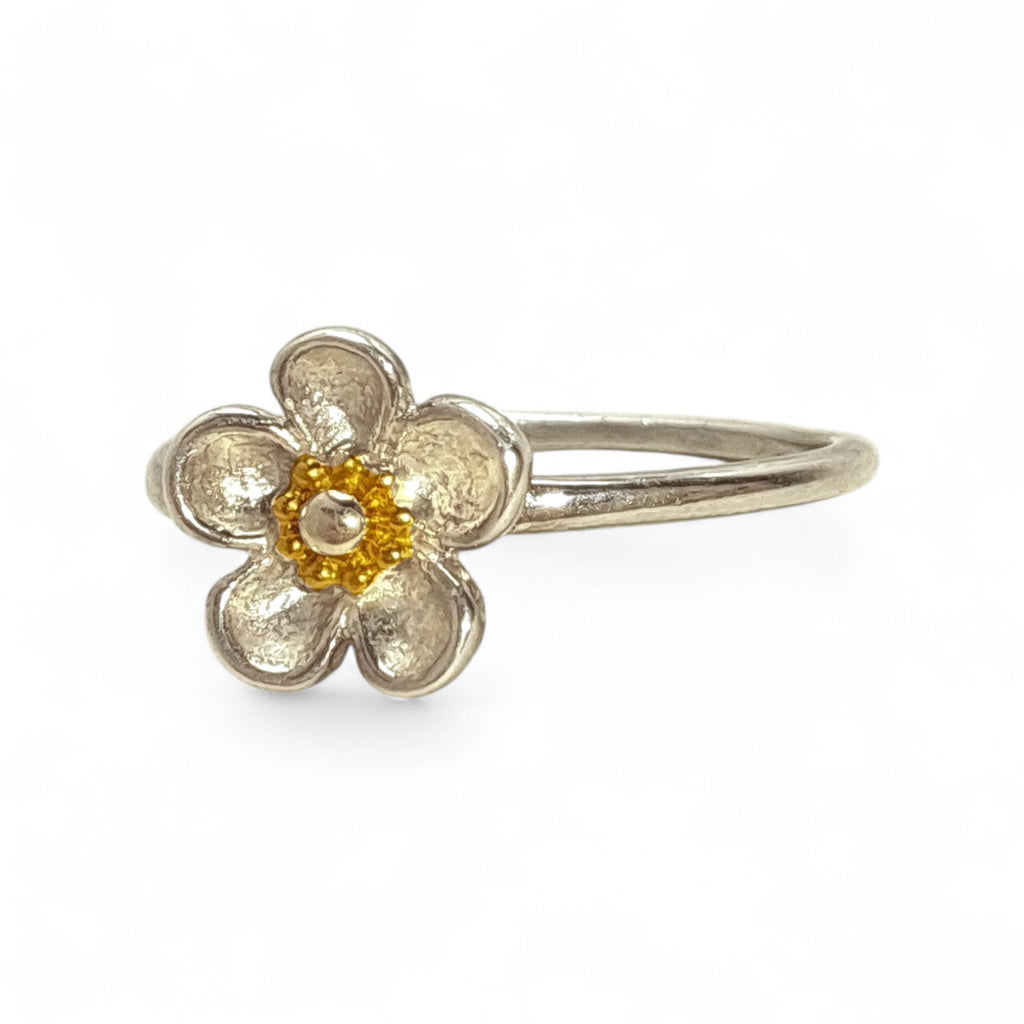 Whimsical by design, this classic and iconic Wood Rose sterling silver flower ring is beautifully crafted with a sandblasted finish on the petals and a contrasting 18ct gold plated centre. For a small, rings, this little beauty have received the true love and attention to detail owed to every piece of Kit Heath.