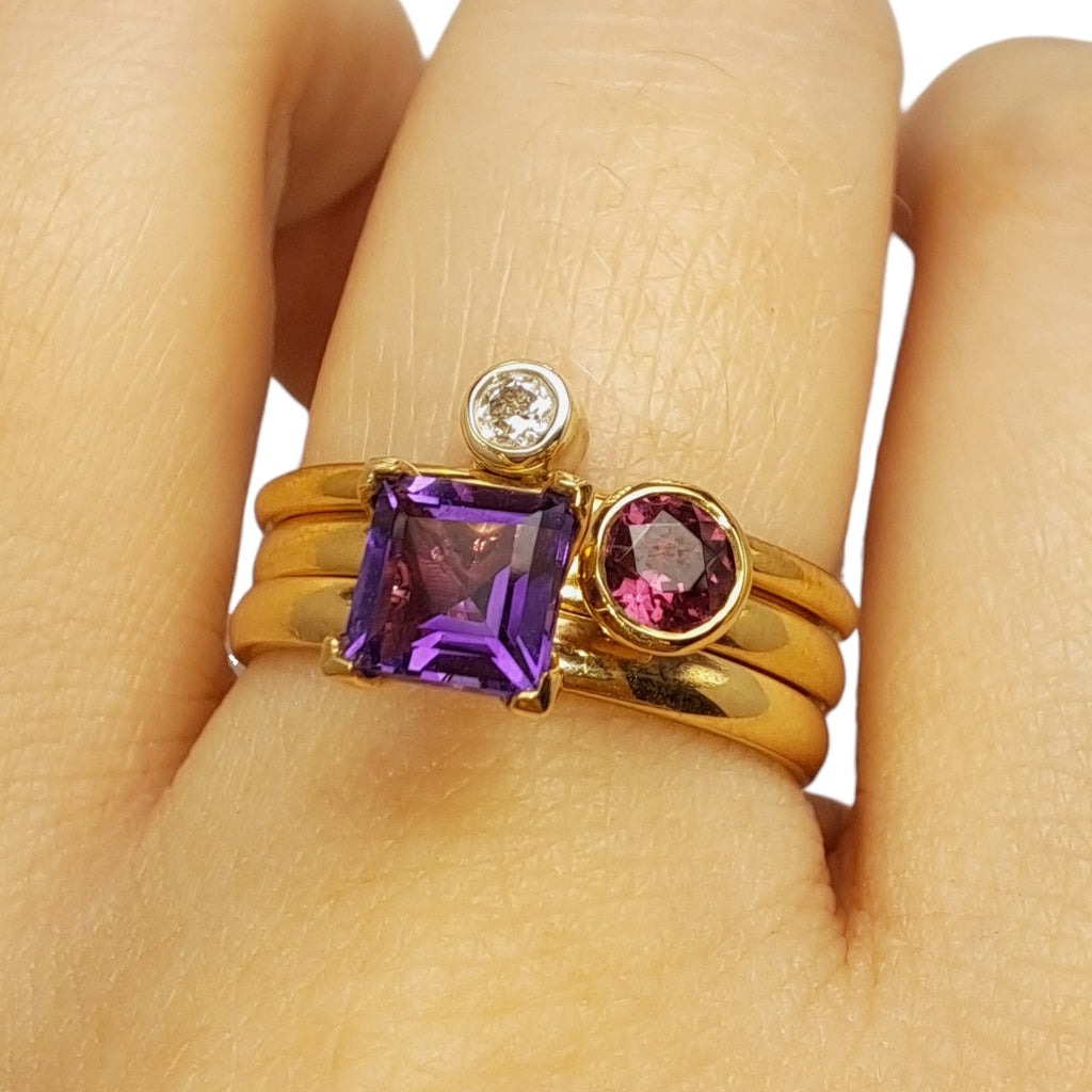 WILDE 5mm Square Amethyst 9ct Yellow Gold Stacking Ring
