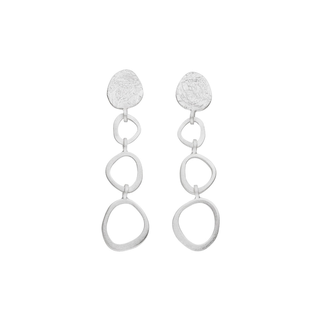 Handmade by female-owned German designer brand Tezer, these stunning earrings consist of three organic open circles hung from a solid organic circle, increasing in size as they drop.