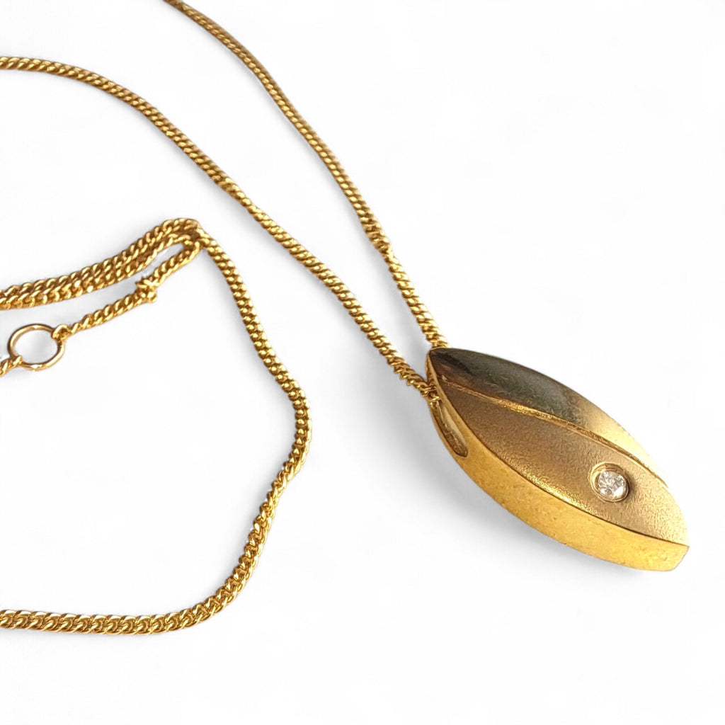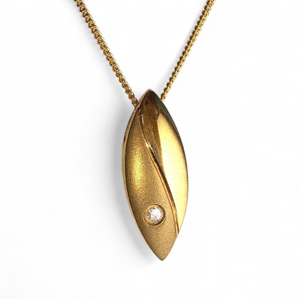 Vintage 9ct Yellow Gold Marquise Pendant with Diamond Detail