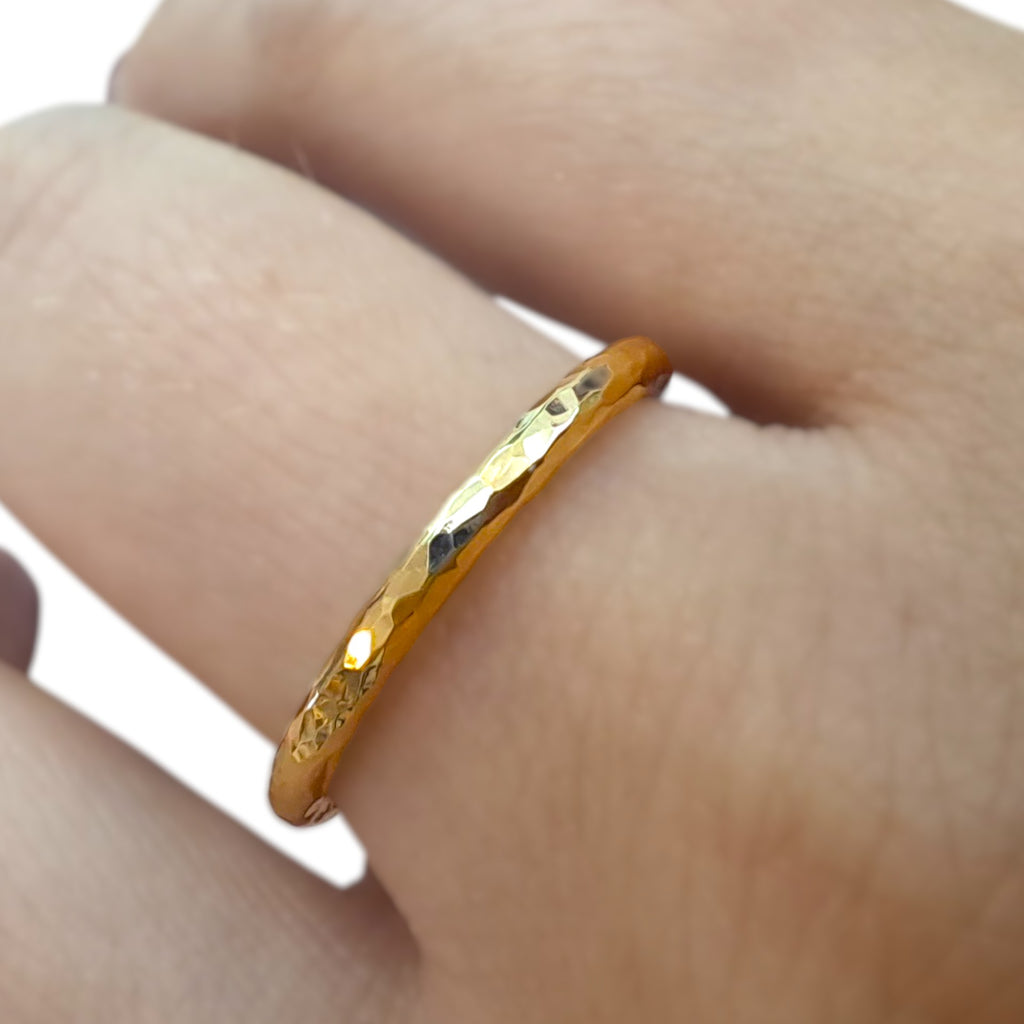 WILDE Hammered 9ct Yellow Gold 2mm Heavy Halo Ring