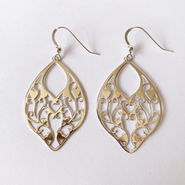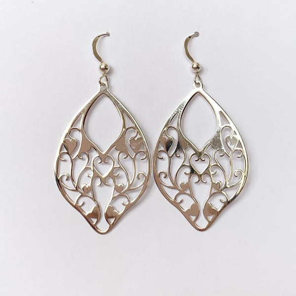 An exquisite pair of laser cut, earrings. The pretty filigree pattern is easy to wear in the daytime or evening.