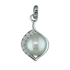 Elegant white freshwater pearl in a cubic zirconia frame.