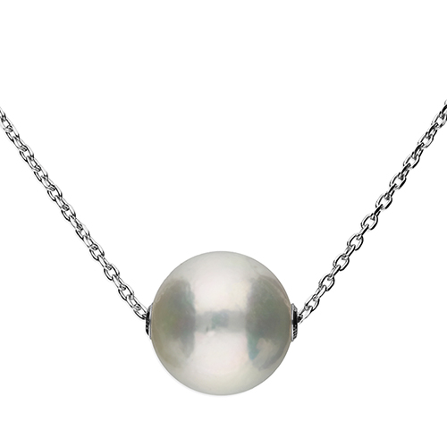 Simple everyday sterling silver necklace with large freshwater pearl.