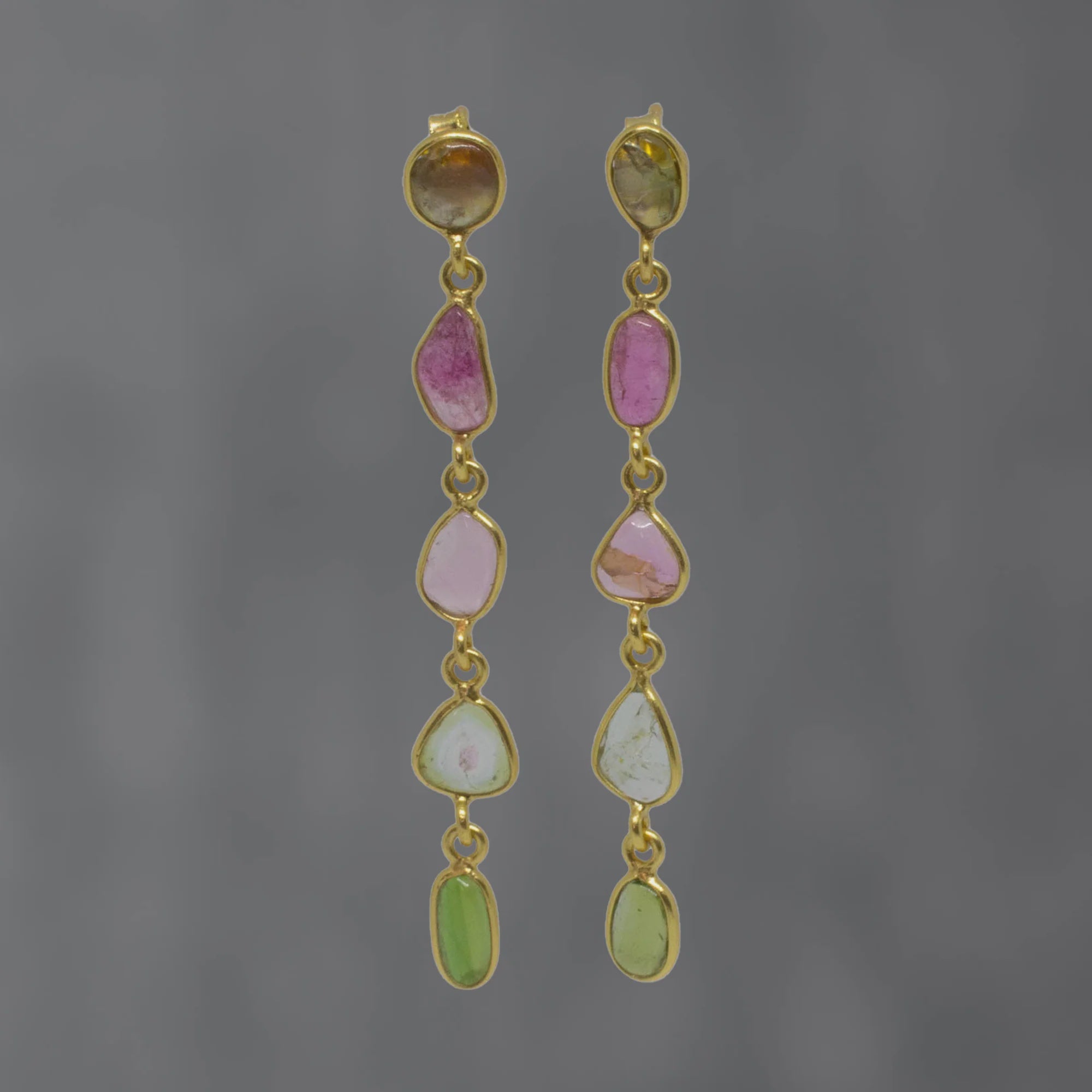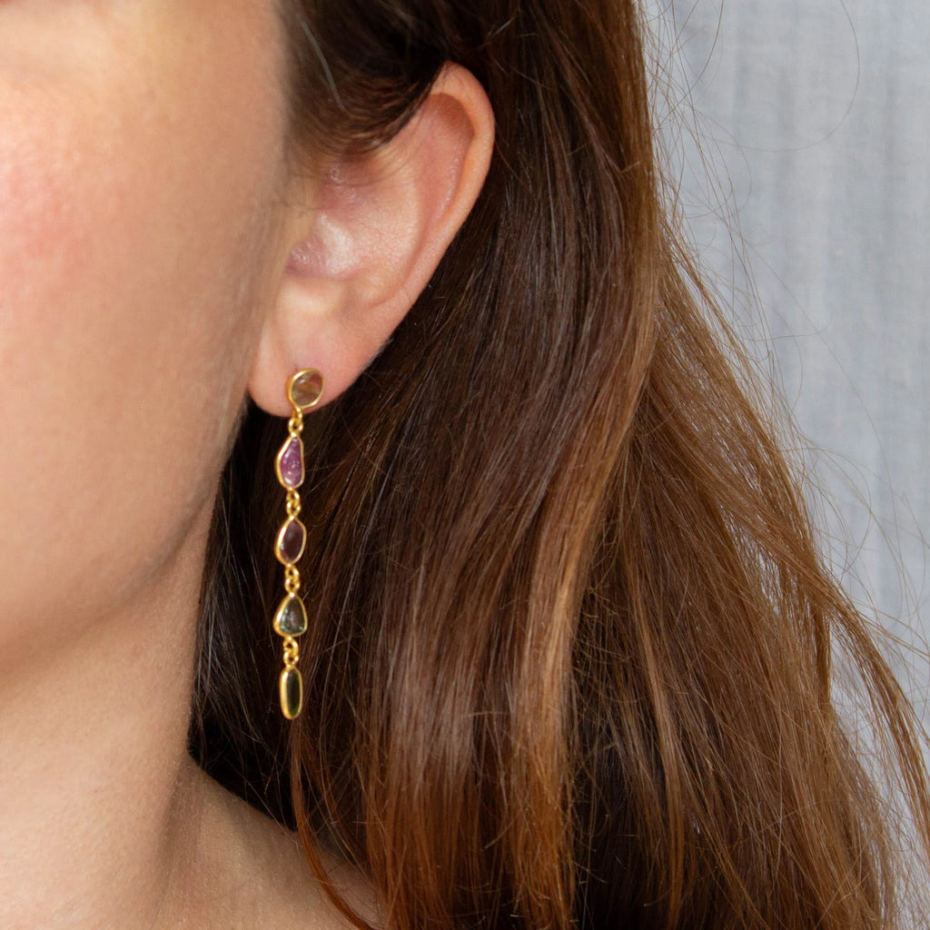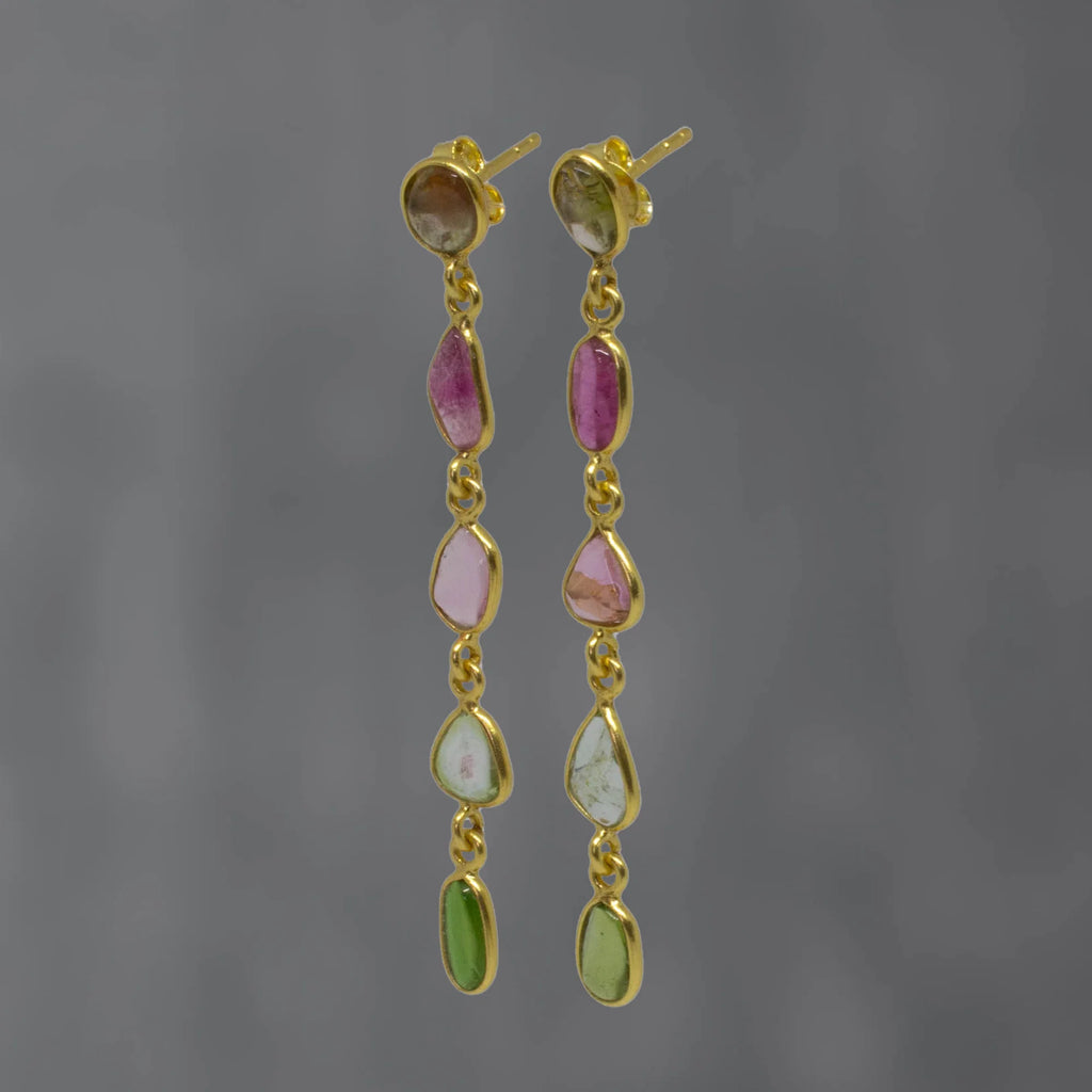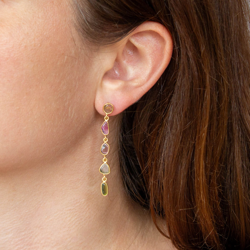 Beyond Biasa Tourmaline and Gold Long Earrings