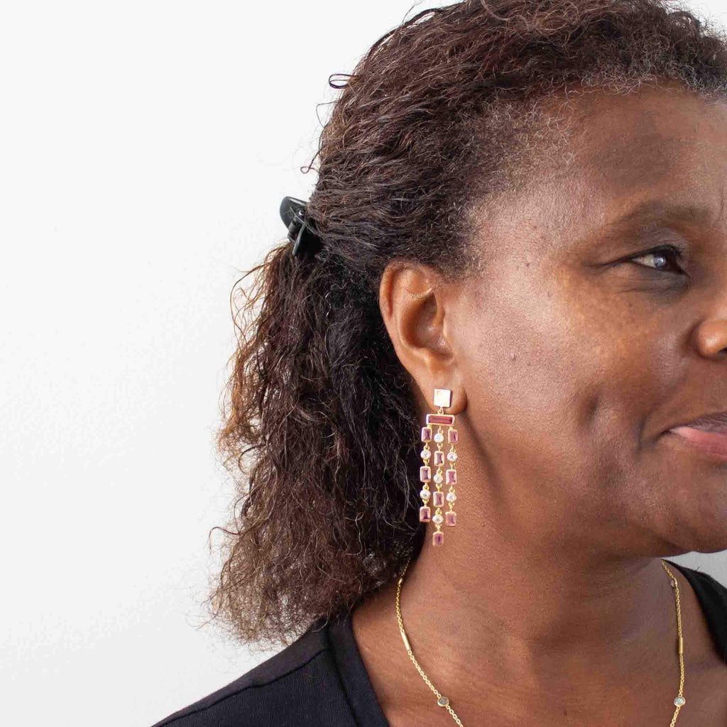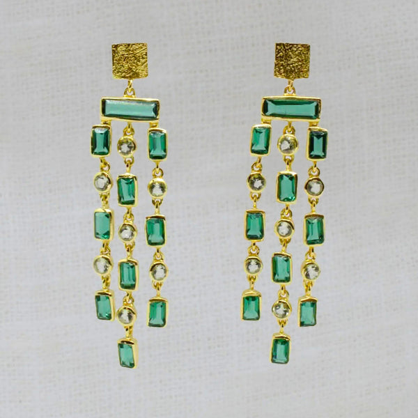 Beyond Biasa Triple Row Gemstone Chandelier Earrings