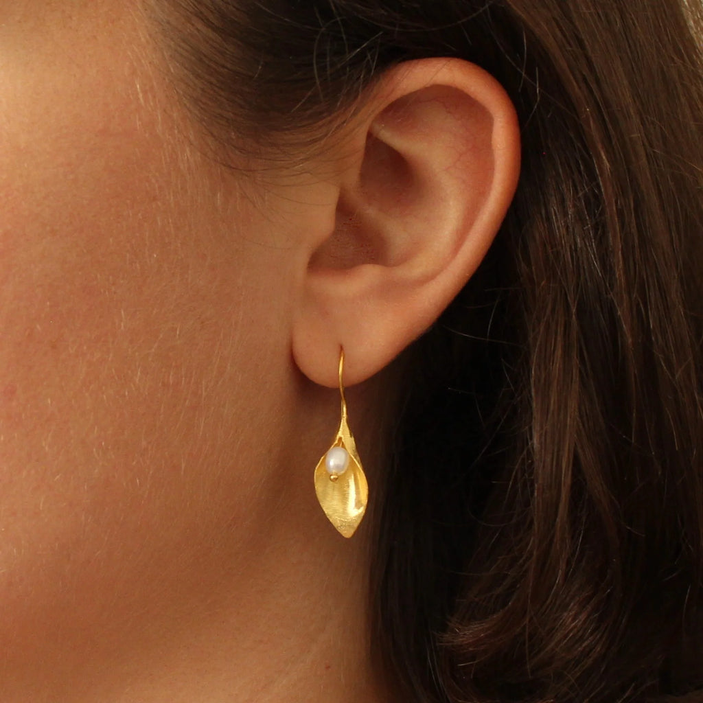 Beyond Biasa Pearl Brushed Leaf Earrings