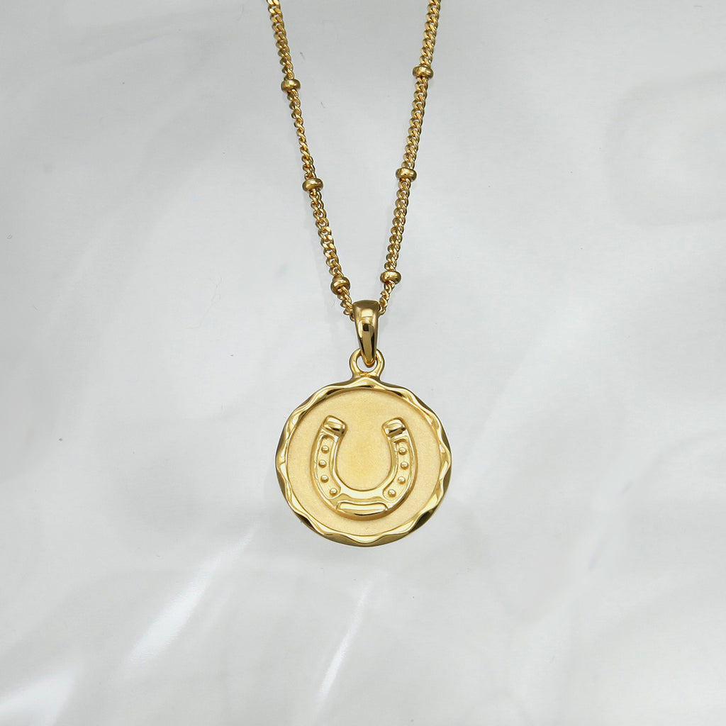 Lovely detailed horseshoe pendant on a beaded silver chain. The perfect gift for wishing friends and loved ones luck.