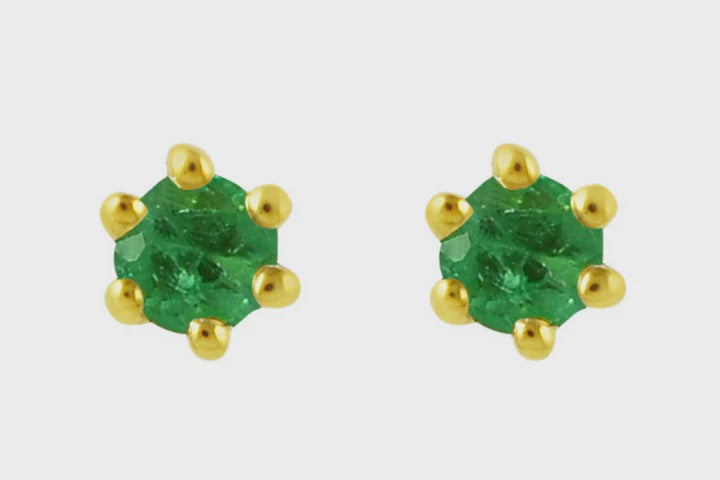 Gold Plated Teeny Emerald Stud Earrings. Itsy-bitsy, teeny-weeny colourful gemstone stud earrings. Add an instant splash of colour to your day when you purchase these easy wearing earrings. These gemstone earrings have a claw setting and come in a variety of colours and both silver and gold finishes.