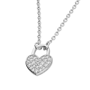 Silver CZ Heart Padlock Necklace