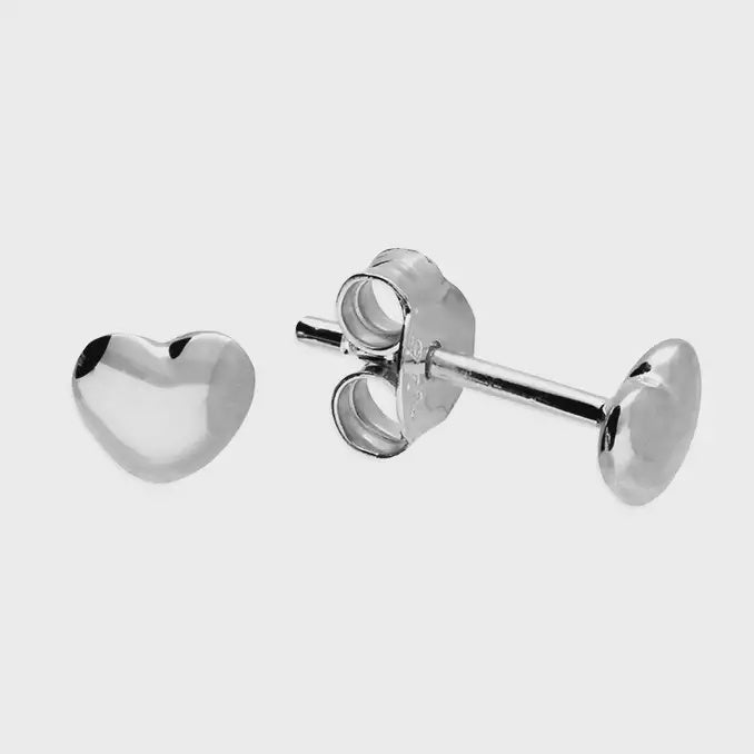 These small heart studs feature a domed shape to catch the light and add a 3D effect to the shape. Available in sterling silver.