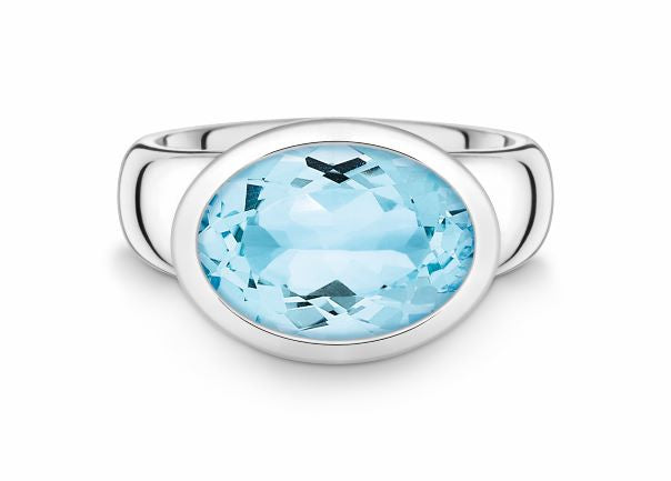 A beautiful hand crafted silver ring, featuring a striking blue topaz.