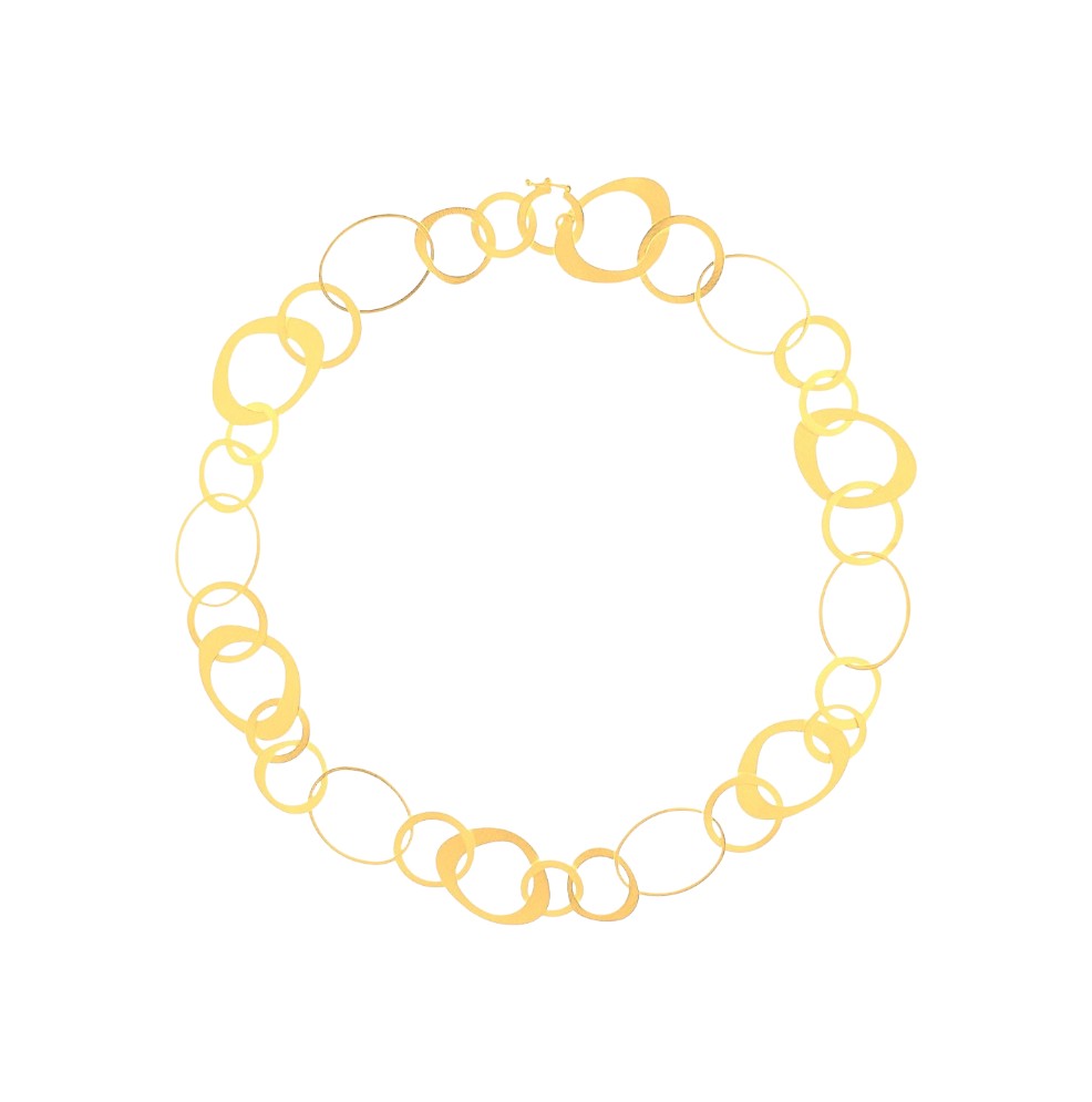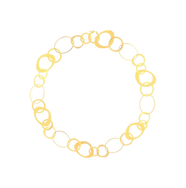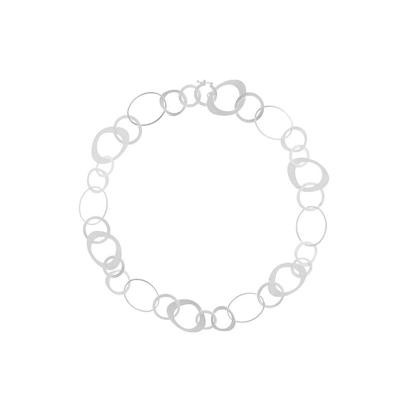 Designed by female-owned German designer brand Tezer, this 70's style geometric open ovals and circles bracelet is available in brushed hard gold-plated sterling silver, or brushed sterling silver.