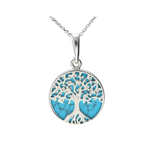Designer tree pendant made of a sterling silver with a round shaped turquoise stone.