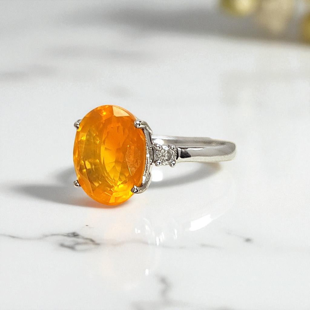 Gemstone: Natural Fire Opal (approx. 10mm x 8mm, oval cut)